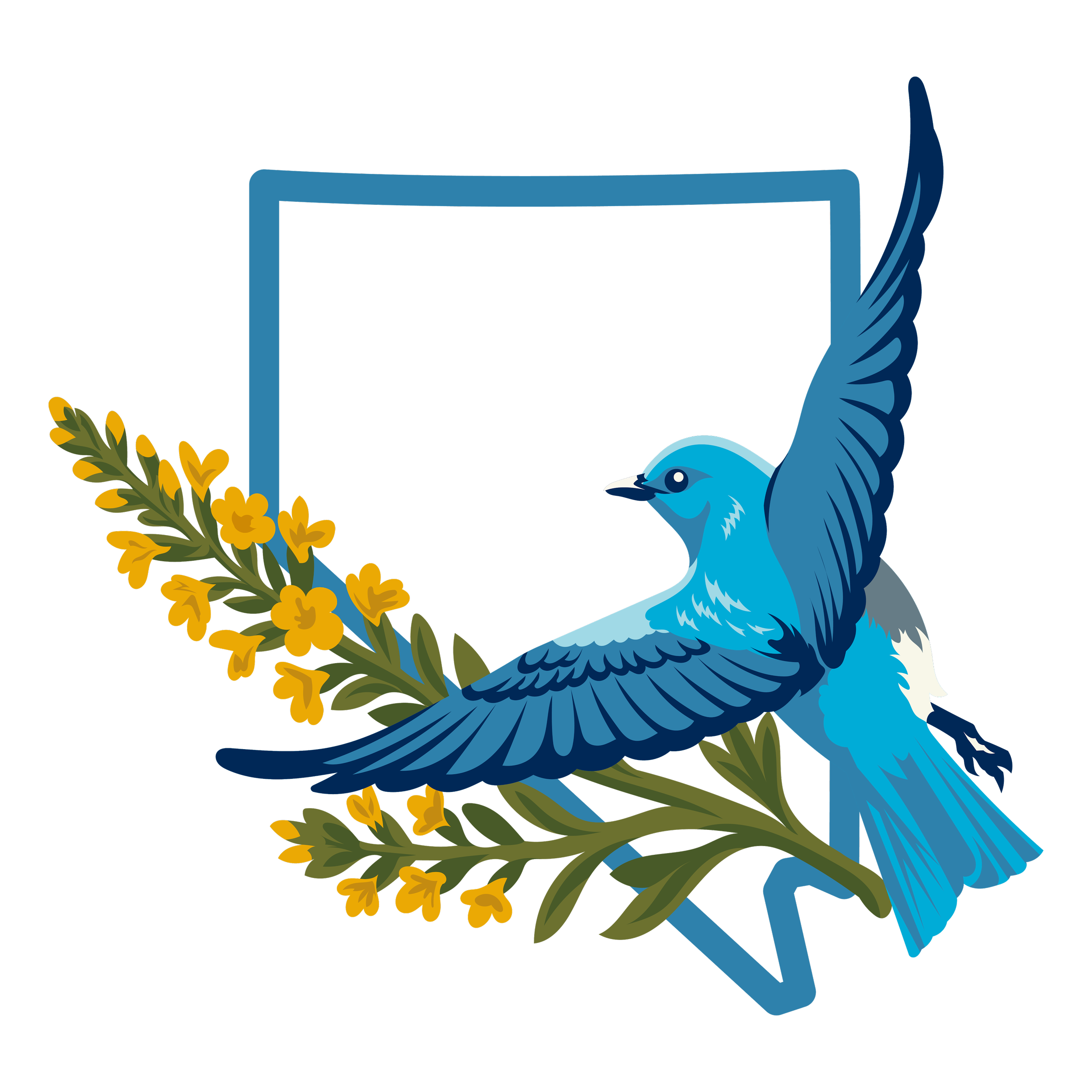 This design is a personal tribute to the wild, rugged beauty of Nevada. I wanted to take the state's most iconic symbols—the Mountain Bluebird and the golden Sagebrush—and layer them over that unmistakable Nevada silhouette to create something that feels like home. The goal was to use bold lines and vibrant colors to capture the energy of the high desert and the wide-open skies of the Great Basin. It's really just about celebrating the unique landscape and the natural spirit of the Silver State in a clean, modern way.